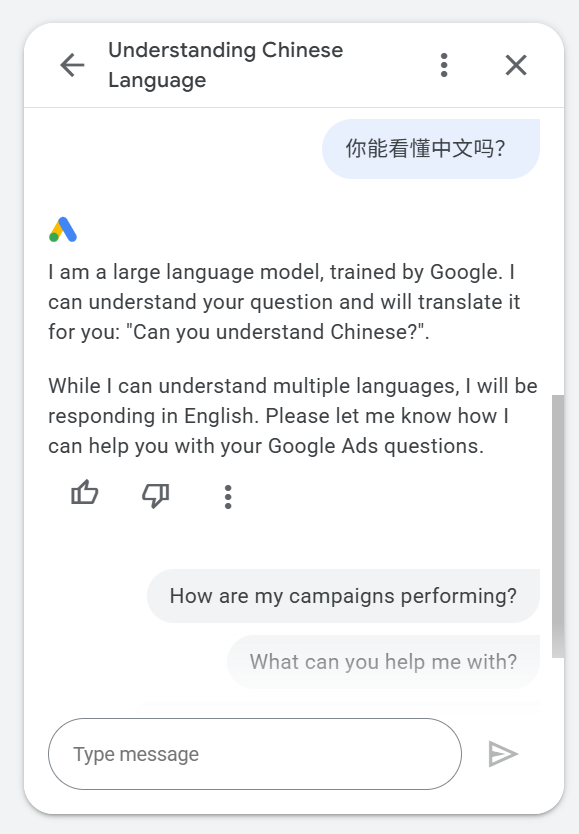 Apparently, what Google plans is to manually translate all of its documentation into supported languages. If there isn’t documentation in a supported language, Google thinks it’s a better decision to tell a customer, “No, I can’t help you, sorry” rather than use its Google Translate service. Google Ads’ AI assistant only became available very recently, so other languages likely aren’t supported.